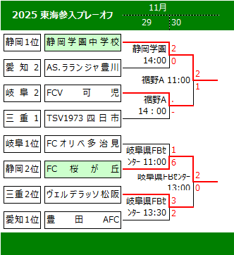 | 各試合の勝利チームがJFAU-15 サッカーリーグ東海 2026 へ昇格する。 |