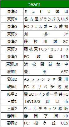 | 東海地域各県U-15リーグで資格を有する最上位 2 チーム(合計 8 チーム) |
