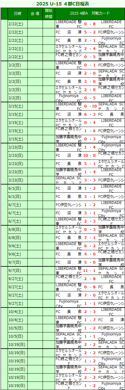 2025 U-15サッカーリーグINDEX