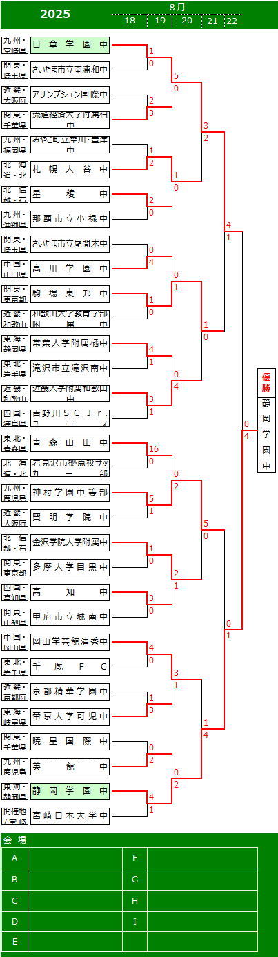 | (1) 優勝チームに、(公財)日本中学校体育連盟よりトロフィー、(公財)日本サッカー協会より優勝旗(持ち回り)、NHKよりNHK盾(持ち回り)、文部科学省より盾を授与する。 |