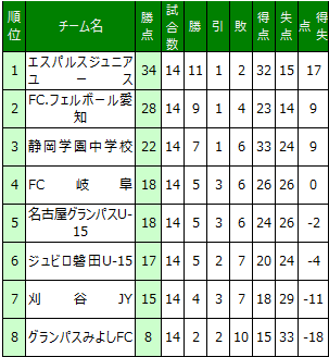 | (2)勝ち3点、引き分け1点、負け0点の勝ち点により順位を決定する。なお、勝ち点が同一の場合は以下の項目に従い順位を決定する。 |