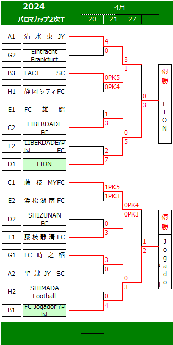 | 2次トーナメント… 4月20日(土)・21日(日)・27(土)・28日(日) | |